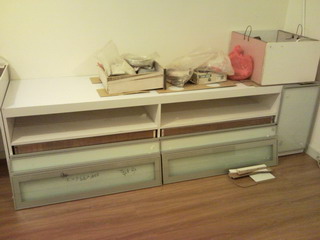 尚欠﹕燈、冷氣機、窗簾、地腳線修邊、換燈掣、電視櫃櫃門及櫃桶、鞋櫃、吊櫃櫃門及內籠、大門頂箱、換門鐘掣、電視、飯枱、梳化、櫈、茶几、層架