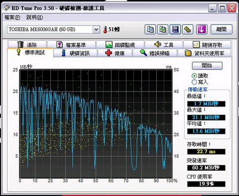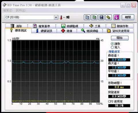 初步試驗係大至成功o既 除o左張 PCMCIA Card 之外 實際扮 hard disk o既效能係好過用緊果隻真正 hard disk 添 平均讀取值係快o左 11MB/SEC 即係一個 100 MB file 用緊果隻要 read 七秒 扮 hard disk 呢隻就只需要 read 四秒 表現非常凸出! 而最令人滿意o既唔係速度 而係慳電同埋熱量非常之低 低到接近唔熱 所以用係 laptop 上面係非常好o既! 仲有最最最抵用o既原因…… 就係大部份 CF 或者 SD card 都係有永久保用 即係話…… 以後都唔怕死 hard disk 就算真係死o左都唔洗錢可以換返隻新o架喇!!